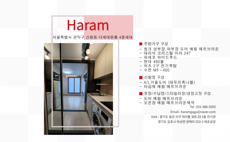 portfolio 카테고리 전체주방가구신발장붙박이장서재용가구각종수납장사무용가구원룸 원룸 서울특별시 관악구 신림동 다세대원룸 4층세대 페이지 정보 작성자 최고관리자 댓글 0건 조회 1,294회 작성일 23-06-14 08:55 본문 이전글서울특별시 관악구 신림동 원룸세대 23.07.07 다음글서울특별시 관악구 신림동 다세대원룸 3층세대 23.01.19 목록