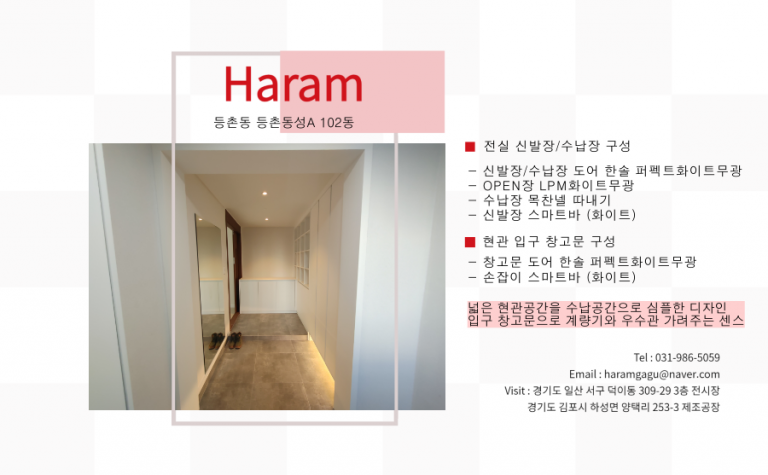 portfolio 카테고리 전체주방가구신발장붙박이장서재용가구각종수납장사무용가구원룸 신발장 등촌동 등촌동성A 102동 신발장 페이지 정보 작성자 최고관리자 댓글 0건 조회 2,434회 작성일 22-01-12 10:21 본문 이전글등촌동 등촌동성A 102동 붙박이장 22.01.12 다음글북아현동 두산A 103동 신발장 22.01.10 목록