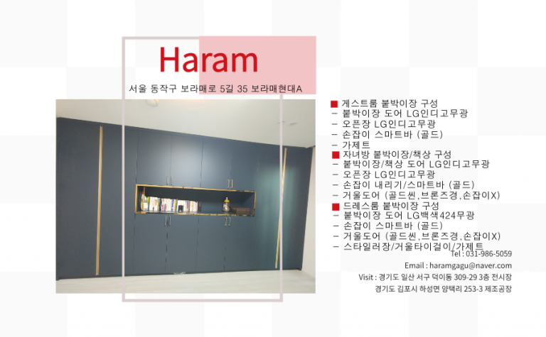 portfolio 카테고리 전체주방가구신발장붙박이장서재용가구각종수납장사무용가구원룸 붙박이장 서울 동작구 보라매로 5길 35 보라매현대A 붙박이장 페이지 정보 작성자 최고관리자 댓글 0건 조회 2,572회 작성일 22-01-18 16:36 본문 이전글서울 동작구 신대방동 원룸단납건 22.02.18 다음글서울 동작구 보라매로 5길 35 보라매현대A 신발장 22.01.18 목록