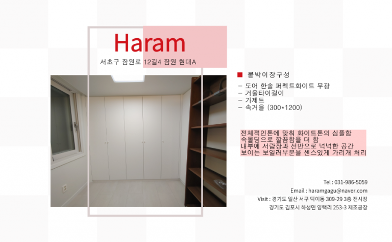 portfolio 카테고리 전체주방가구신발장붙박이장서재용가구각종수납장사무용가구원룸 붙박이장 서초구 잠원로 12길4 잠원현대A 붙박이장 페이지 정보 작성자 최고관리자 댓글 0건 조회 2,537회 작성일 21-12-29 10:51 본문 이전글서초구 잠원로 12길4 잠원현대A 신발장 21.12.29 다음글서초구 잠원로 12길4 잠원현대A 주방가구 21.12.29 목록