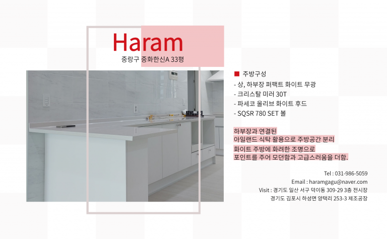 portfolio 카테고리 전체주방가구신발장붙박이장서재용가구각종수납장사무용가구원룸 주방가구 중랑구 중화한신A 33평 주방가구 페이지 정보 작성자 최고관리자 댓글 0건 조회 4,398회 작성일 21-11-10 11:06 본문 이전글군포시 산본 태권도장 수납장 21.11.11 다음글파주 운정 가람마을 10단지 40평 주방가구 21.11.08 목록