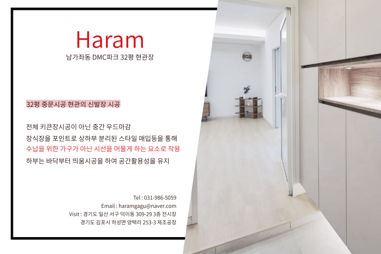 portfolio 카테고리 전체주방가구신발장붙박이장서재용가구각종수납장사무용가구원룸 신발장 남가좌동 DMC파크 32평 현관장 페이지 정보 작성자 최고관리자 댓글 0건 조회 2,894회 작성일 21-09-29 09:26 본문 이전글남가좌동 DMC파크 32평 주방가구 21.09.29 다음글등촌동 소형아파트 91세대 모델하우스 전시가구 21.09.27 목록