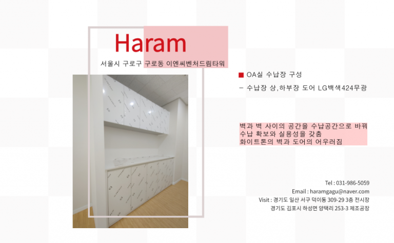 portfolio 카테고리 전체주방가구신발장붙박이장서재용가구열린 분류 각종수납장사무용가구원룸 각종수납장 서울시 구로구 구로동 이앤씨벤쳐드림타워 수납장 페이지 정보 작성자 최고관리자 댓글 0건 조회 1,960회 작성일 22-04-22 16:09 본문 이전글경기도 일산동구 백석동 일산요진와이시티아파트 GATE1 24.08.14 다음글서울시 은평구 증산로299 증산청록A 수납장 22.03.29 목록