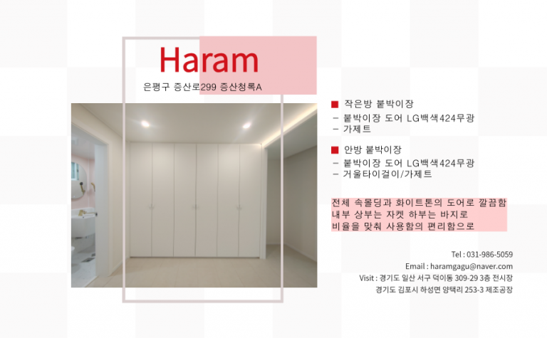 portfolio 카테고리 전체주방가구신발장열린 분류 붙박이장서재용가구각종수납장사무용가구원룸 붙박이장 서울시 은평구 증산로299 증산청록A 붙박이장 페이지 정보 작성자 최고관리자 댓글 0건 조회 2,076회 작성일 22-03-29 10:41 본문 이전글서울시 서초구 잠원동 54-7 붙박이장 22.03.30 다음글서울 동작구 보라매로 5길 35 보라매현대A 붙박이장 22.01.18 목록